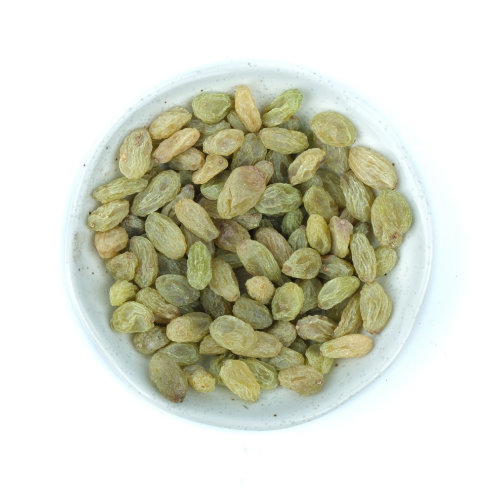 PremiumPremium Afghan green raisins β naturally sweet with a beautiful golden hue.